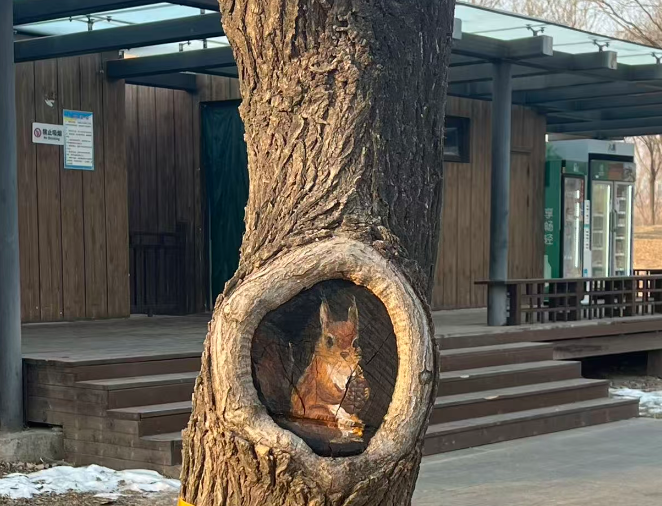 O parque utilizou os buracos naturais de formas variadas nas árvores ao longo da estrada como telas, lançando uma atividade de pintura colorida com o tema “Vida nos Buracos das Árvores – Encontra os Amiguinhos de Nansen”. Imagens de cartoon como ouriços, pássaros e patinhos, “espreitam” dos buracos, injetando vitalidade e animação na área do parque durante o inverno.
