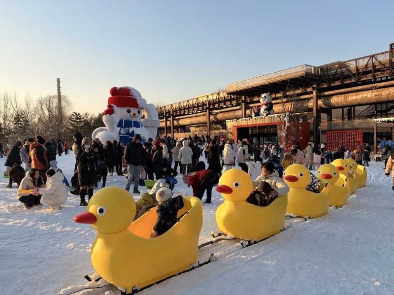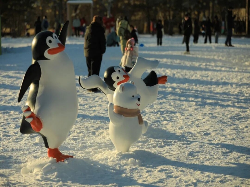Adentrar esse parque de gelo e neve é como penetrar num mundo de contos de fadas! Um boneco de neve gigante acena no meio ao cenário gelado, e casinhas de gelo e neve para descanso transmitem uma atmosfera nórdica que dispensa os filtros — qualquer foto ali tirada é um retrato exclusivo do inverno. Um passeio no comboio de fofos patinhos amarelos permite que tanto adultos como crianças experimentem a alegria de deslizar na neve.